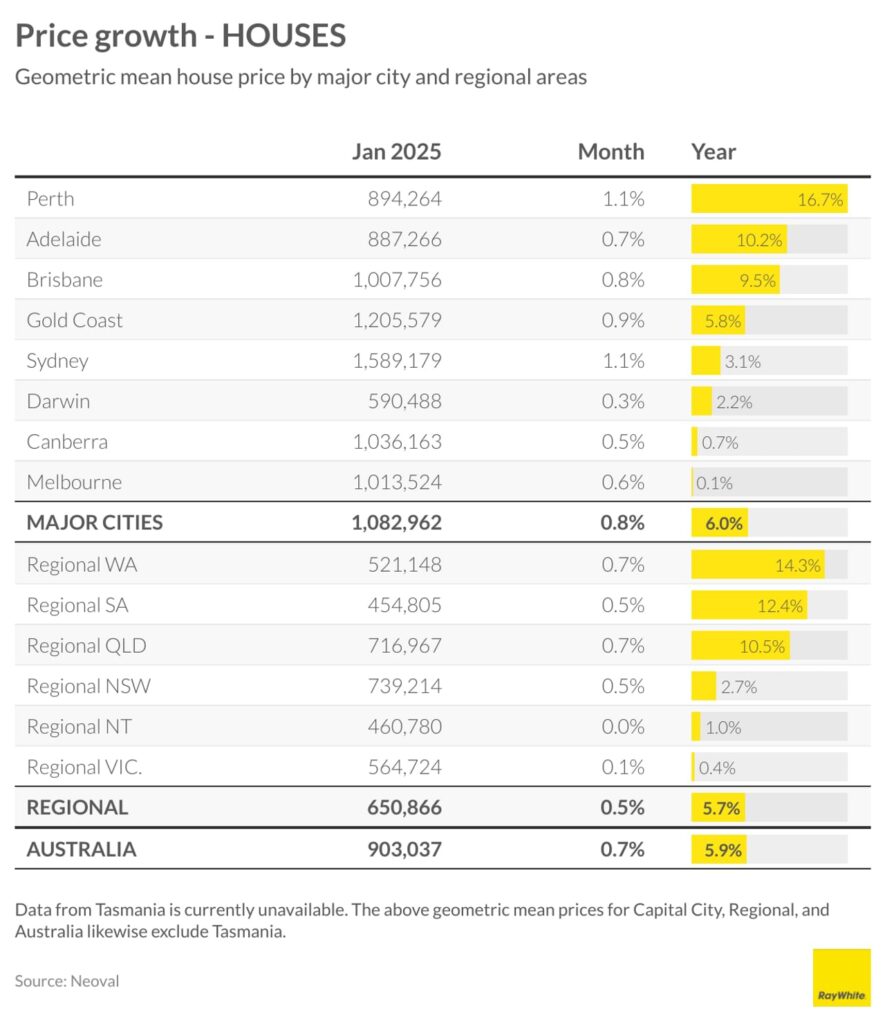 This pattern extends into regional markets, where regional Western Australia and South Australia continue their strong performance with 14.3 per cent and 12.4 per cent growth respectively, while regional Victoria maintains minimal growth at 0.4 per cent. These figures reinforce that the traditional property powerhouses of Sydney, Melbourne, and Canberra continue to operate at a different pace from the rest of the country.