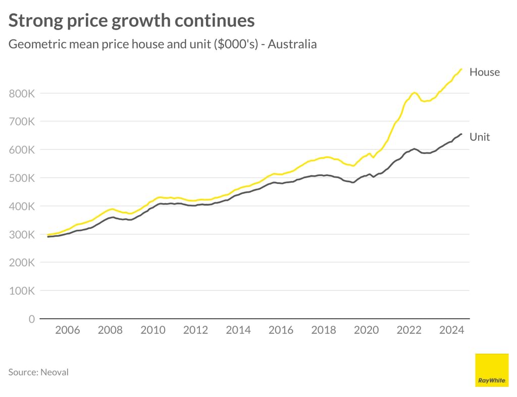 The recent inflation surge has shifted discussions from potential interest rate cuts to possible increases, with some speculating a hike as early as August. This shift is expected to temper property listings and sales volumes, as higher borrowing costs may further strain affordability and cause delays in purchasing decisions. Over the past year, house prices have experienced a significant 9.5 per cent increase, bringing the national median to $886,818. Similarly, unit prices have risen by 7.1 per cent annually, reaching a median of $656,066 nationwide.