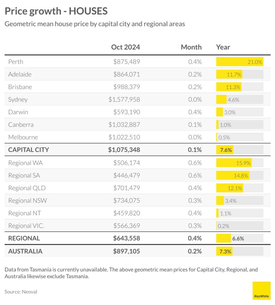 Housing market gains continue across Australia. This growth is happening across both expensive and affordable suburbs, showing strength throughout the entire city.